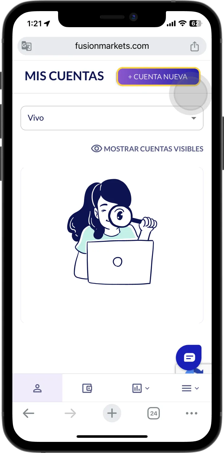 En el Portal de clientes, en «Cuentas», crea una nueva «Cuenta en vivo».