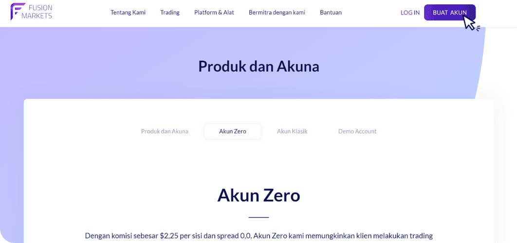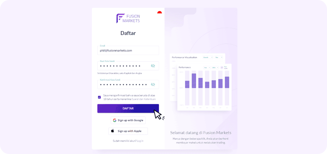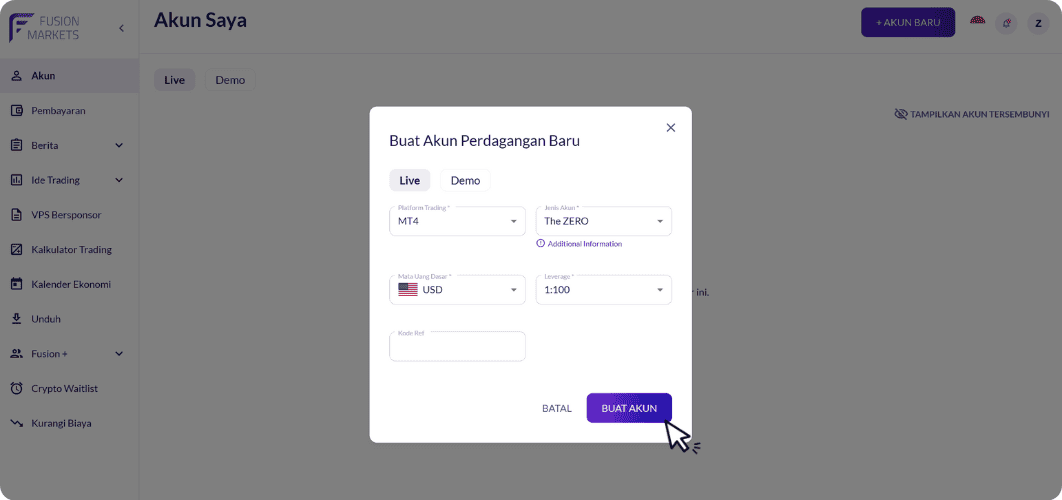 Ikuti panduan langkah-langkah berikut untuk membuka akun Zero di Fusion Markets.